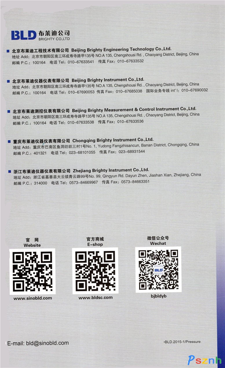 本公司具有生產(chǎn)規(guī)格品種多,加工工藝精良的特點。特別是在微小壓力的測量,單、雙膜合微壓表的制造;化學密封及世界先進的等離子、激光、無氧焊接工藝在產(chǎn)品上的應用方面更具特色。 為滿足不同用戶的要求,布萊迪公司可為用戶提供多種標準的產(chǎn)品,如中國GB標準;日本JIS標準;歐洲D(zhuǎn)N標準;美國及北美標準等。為出口上述國家和地區(qū),公司除開發(fā)以上幾種標準的螺紋接體,法蘭接體外,還為這幾種不同標準地區(qū)生產(chǎn)各種儀表的外殼、防爆耐震表體及其它儀表的另部件。公司的部分產(chǎn)品并完成了“UL、CE”安全認證。 布萊迪公司1998年通過摩迪國際認證公司的ISO9001質(zhì)量體系認證;是北京市外商投資的先進技術(shù)企業(yè);并自2002起一直成為北京市的高新技術(shù)企業(yè)。 布萊迪公司產(chǎn)品在國內(nèi)銷售市場不斷擴大的同時,其產(chǎn)品還遠銷到了以東南亞、歐洲、北美洲為主的境外20多個國家和地區(qū)?!”局?ldquo;優(yōu)質(zhì)、服務、高效、創(chuàng)新”的方針,布萊迪公司的全體員工時刻準備為全球的廣大新老客戶提供優(yōu)良的產(chǎn)品和周到的服務。