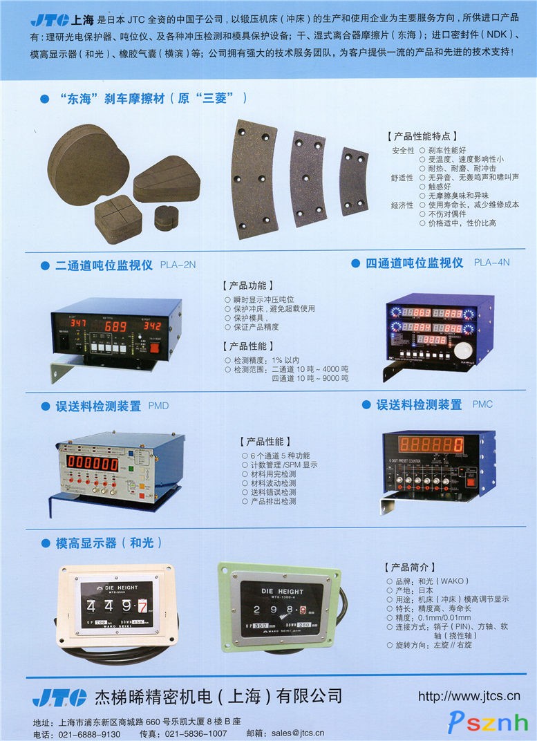 壓力機(jī)械:JTC上海公司在中國以沖床的生產(chǎn)制造和使用企業(yè)為主要服務(wù)方向,主要產(chǎn)品有:光電保護(hù)裝置(安全光幕)、負(fù)荷檢測裝置印(噸位儀)、干、濕式離合器及配件、模具保護(hù)及檢測設(shè)備、進(jìn)口密封件、沖床周邊配件等:同時提供各種國產(chǎn)、進(jìn)口沖床的技術(shù)支持、維修改造、沖床及光電保護(hù)器的年檢等服務(wù)。