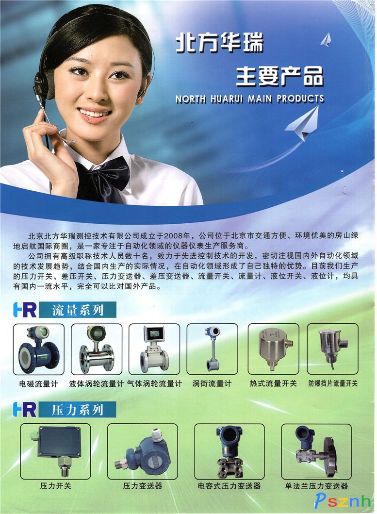 北京北方華瑞測(cè)控技術(shù)有限公司成立于2007年,是一家專注于自動(dòng)化儀表領(lǐng)域的儀器系統(tǒng)集成商,服務(wù)商,公司專業(yè)從事壓力開關(guān),差壓開關(guān),差壓變送器,壓力變送器及液位開關(guān),液位計(jì),物位開關(guān),物位計(jì),流量開關(guān),流量計(jì)等的研發(fā)及銷售?!昂<{天下·智匯九州”,公司不斷引進(jìn)消化國(guó)際先進(jìn)工控技術(shù),服務(wù)于中國(guó)自動(dòng)化領(lǐng)域。