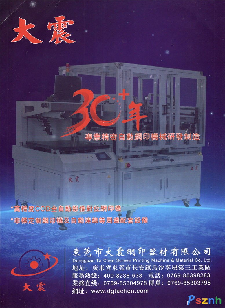 東莞市大震網印機械有限公司創(chuàng)立于1981年,秉承30多年的專業(yè)制造和扎根服務國內客戶15年的經驗,“大震”業(yè)已成為一家集研發(fā)、制造、銷售于一體的絲網印刷機專業(yè)生產廠商。“大震”已成功推出PCB、FPC、SMT、LCD、HIC、MLCC、EL、MLCR、ITO觸控式螢幕等系列專用自動網印機及周邊設備,“ 大震 ”品牌行銷世界各地,品質和服務深得客戶的肯定。