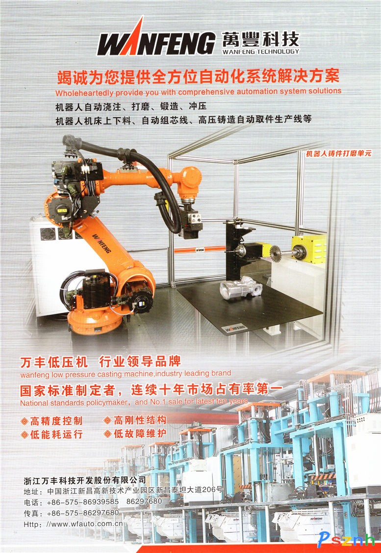 浙江萬豐科技開發(fā)股份有限公司是萬豐奧特控股集團下屬全資子公司,坐落于浙江新昌省級高新技術(shù)園區(qū),是一家專業(yè)從事工業(yè)機器人、工業(yè)自動化裝備、低壓(差壓、重力)鑄造機的研發(fā)與制造,并提供有色合金鑄造交鑰匙工程服務(wù)的系統(tǒng)制造商。