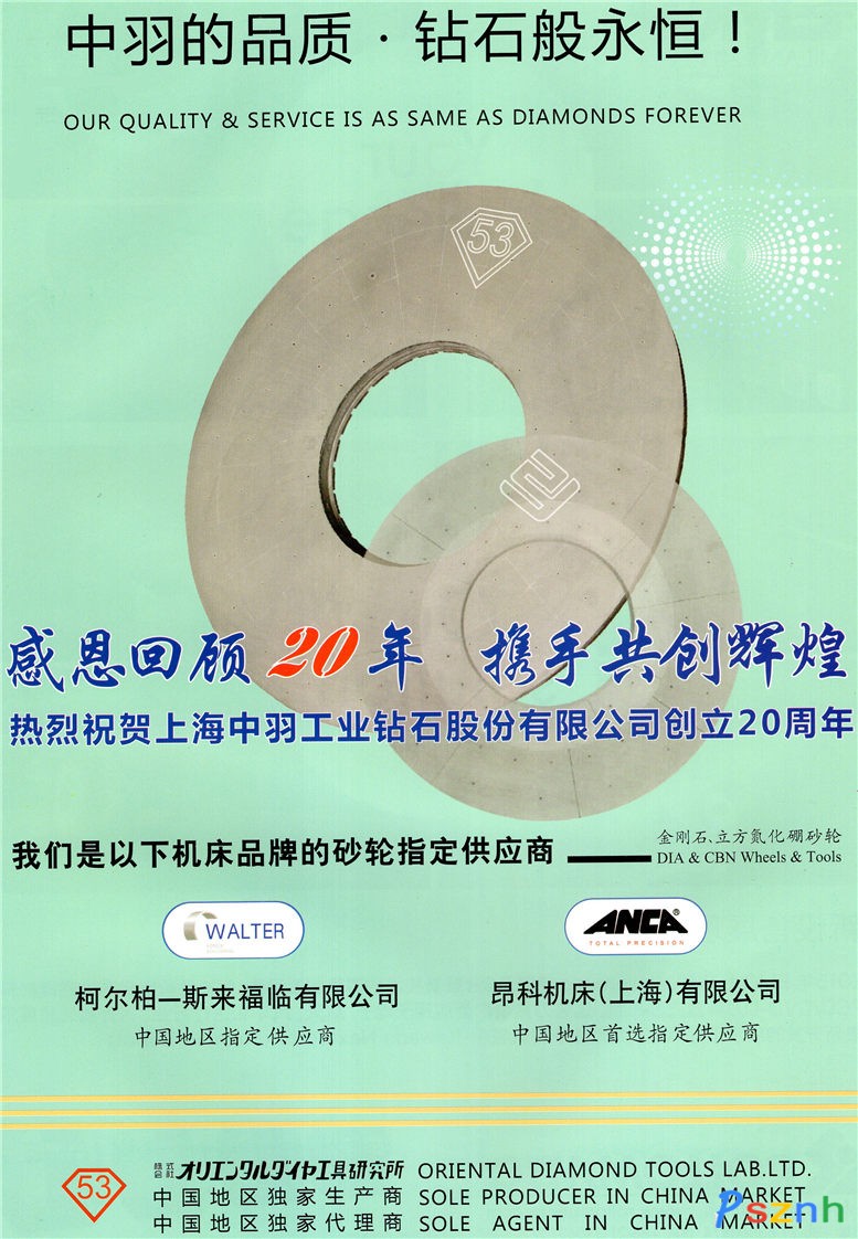 我司自1998年開始和日本株式會(huì)社オリエンタルダイヤ工具研究所(Oriental Diamond Tools Lab. Ltd.)開始正式中日合作在上海生產(chǎn)OEM金剛石(DIA)砂輪和立方氮化硼(CBN)砂輪,其產(chǎn)品分為三大類:一是專用于磨削各類硬質(zhì)合金的樹脂結(jié)合劑DIA砂輪和磨削各類鋼材的樹脂結(jié)合劑CBN砂輪;二是專用于磨削各類玻璃、磁性材料等的金屬結(jié)合劑DIA砂輪;三是專用于磨削各類PCD和PCBN刀具的陶瓷結(jié)合劑DIA砂輪以及專用于磨削各種鋼材的陶瓷結(jié)合劑CBN砂輪。所有產(chǎn)品的原材料及生產(chǎn)工藝均由日本Oriental公司提供并完全按照日本國(guó)家標(biāo)準(zhǔn)予以生產(chǎn)。