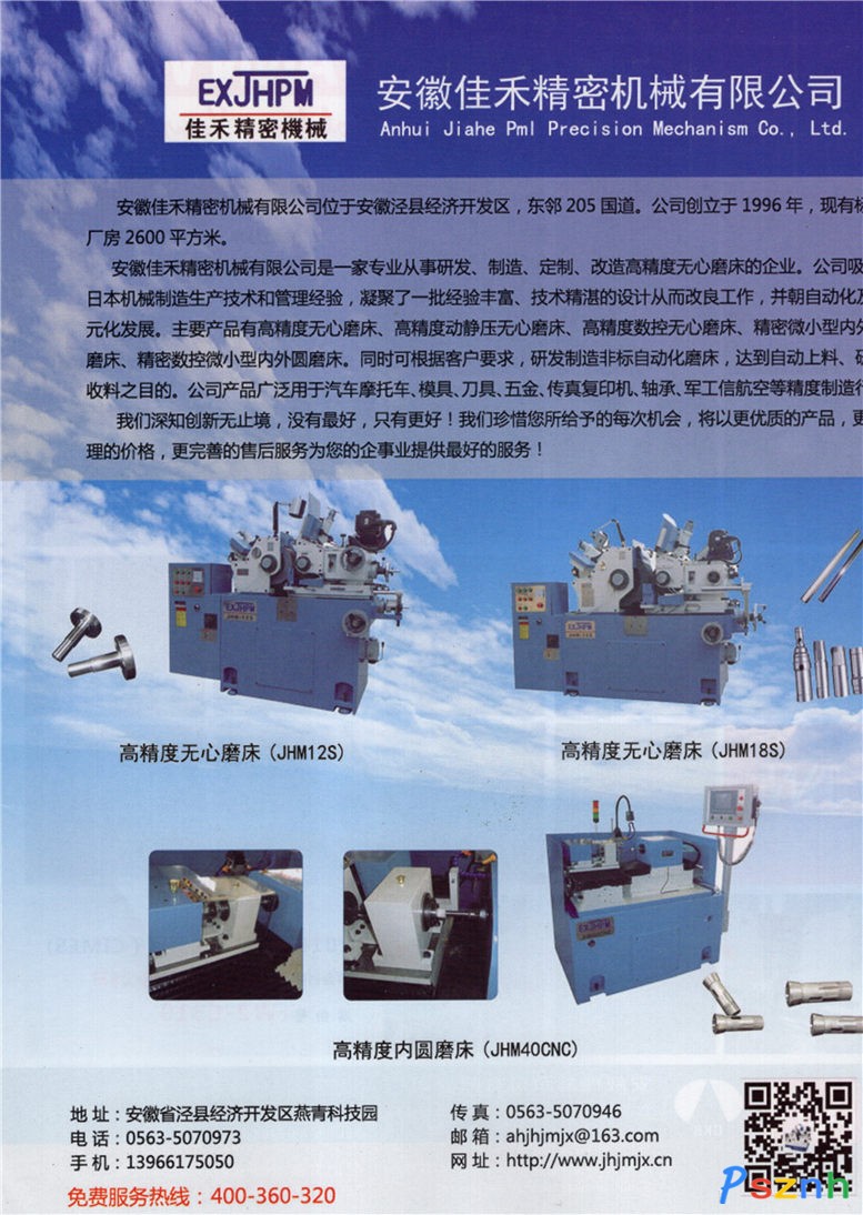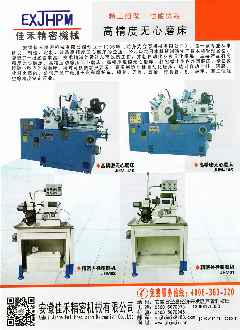 安徽佳禾精密機械有限公司是一家專業(yè)從事研發(fā)、制造、定制、改造高精度無心磨床的企業(yè)。公司吸納日本機械制造生產(chǎn)技術(shù)和管理經(jīng)驗,凝聚了一批經(jīng)驗豐富、技術(shù)精湛的設計從而改良工作,并朝自動化及多元化發(fā)展。主要產(chǎn)品有高精度無心磨床、高精度動靜壓無心磨床、高精度數(shù)控無心磨床、精密微小型內(nèi)外圓磨床、精密數(shù)控微小型內(nèi)外圓磨床。同時可根據(jù)客戶要求,研發(fā)制造非標自動化磨床,達到自動上料、研磨、收料之目的。公司產(chǎn)品廣泛用于汽車摩托車、模具、刀具、五金、傳真復印機、軸承、軍工信航空等精度制造行業(yè)。