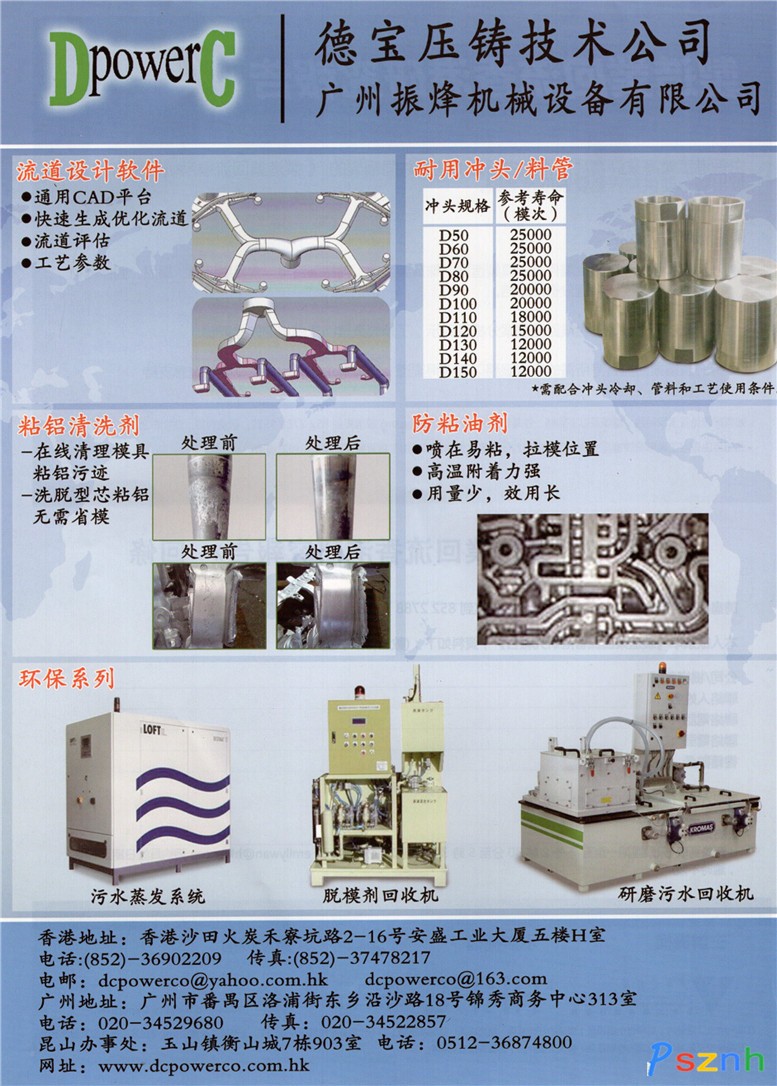 目前壓鑄行業(yè)雖然發(fā)展迅速,但競爭非常激烈,形成廠家低價競爭現(xiàn)象,與此同時,持續(xù)涌入的外資企業(yè)對高質(zhì)量壓鑄件需求不斷上升,以致找不到符合條件的供貨商。積極提升壓鑄水平是中小壓鑄廠急不容緩的工作,而提升現(xiàn)有設(shè)備及人力資源是較為按步就班的做法。德寶公司的產(chǎn)品包括DataCast壓鑄流道設(shè)計軟件及DcCalc壓鑄計算軟件、Flow3D模擬分析軟件,可以為中小企業(yè)提供廉價的模具設(shè)計、培訓(xùn)及分析服務(wù),此外Emtec壓鑄機參數(shù)監(jiān)測儀可以提升現(xiàn)有壓鑄機功能,企業(yè)可以用較小的投資來提高客戶對貴廠的信心。還有外圍設(shè)備如Hotflo鋅合熱流道及模溫控制器,真空壓鑄及震動拋光機等,并提供技術(shù)培訓(xùn)。我們會定期舉辦研討會、軟件培訓(xùn)班,及與外國壓鑄顧問公司合辦技術(shù)培訓(xùn)班等。