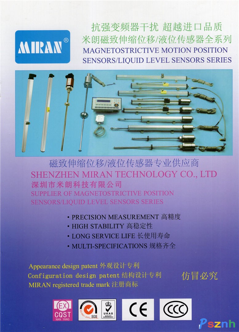 深圳市米朗科技有限公司是經(jīng)深圳市政府認(rèn)定的高新技術(shù)企業(yè)。米朗公司自2002年成立以來(lái),長(zhǎng)期致力于位移傳感器的設(shè)計(jì)開(kāi)發(fā)、生產(chǎn)和銷(xiāo)售,至今已有15年的豐富經(jīng)驗(yàn),現(xiàn)今已成為一個(gè)世界領(lǐng)先的傳感器專(zhuān)家,米朗品牌的產(chǎn)品已經(jīng)廣泛應(yīng)用于世界各類(lèi)自動(dòng)化控制領(lǐng)域,現(xiàn)每年大約有30萬(wàn)只左右的電子尺銷(xiāo)往世界各地。我們的發(fā)展方向是:以技術(shù)創(chuàng)新為核心,以客戶(hù)的需求為導(dǎo)向,將會(huì)一直致力于在位移、物位、角度等測(cè)控領(lǐng)域?yàn)榭蛻?hù)提供一站式解決方案的產(chǎn)品和服務(wù)。