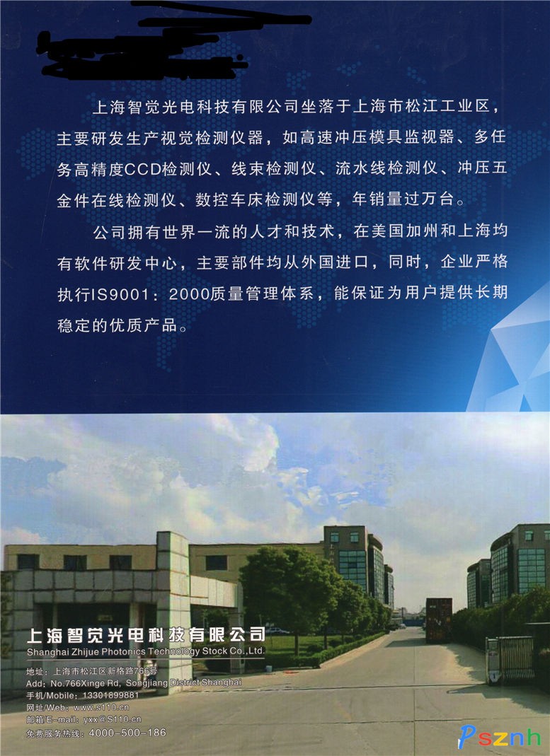 專業(yè)專注,業(yè)精于勤.基于美國加州機器視覺研發(fā)中心,上海智覺光電科技有限公司系國家高新技術企業(yè),專業(yè)研發(fā),生產無損檢測系統(tǒng),圖像處理系統(tǒng),模具監(jiān)視器.提供機器視覺檢測篩選設備(包括硬件和視覺處理軟件以及流水線工作臺).產品具有完整的視覺運算功能:外形測量,角度測量,圓弧度測理,同心圓測量,電子零件檢測篩選,產品亮度比較篩選,邊緣控制,模式匹配,表面缺陷檢測, 設備保護,模具保護,注塑件篩選,五金件篩選及OCR(電子器件識別)等. 追求產品完美的質量,是眾多企業(yè)夢寐以求的目標.基于智覺圖像處理系統(tǒng)的模具保護器及零配件檢測篩選機就是基于智覺圖像檢測技術系統(tǒng)之上開發(fā)的全自動光學檢測篩選儀器,適用于塑膠、五金,汽車,電子,食品,建材,電器,陶瓷,衛(wèi)浴等行業(yè)大批量生產需全檢的產品或零配件,對產品的形狀,尺寸,排序,外觀質量,顏色,飛邊毛刺,加工質量,印刷質量,裝配位置,有無項目等不良缺陷進行100%的高速全檢,最大程度代替人眼檢測,是提高產品質量,減少材料損耗,節(jié)省人工成本,改進流程控制的必備儀器.全自動光電檢測篩選系統(tǒng)可安裝在生產線上,對生產過程中的產品進行在線檢測,發(fā)現(xiàn)不良品即發(fā)出警報或自動剔除不良品,讓合格品流向下一道加工工序.保質保量完成生產任務.
