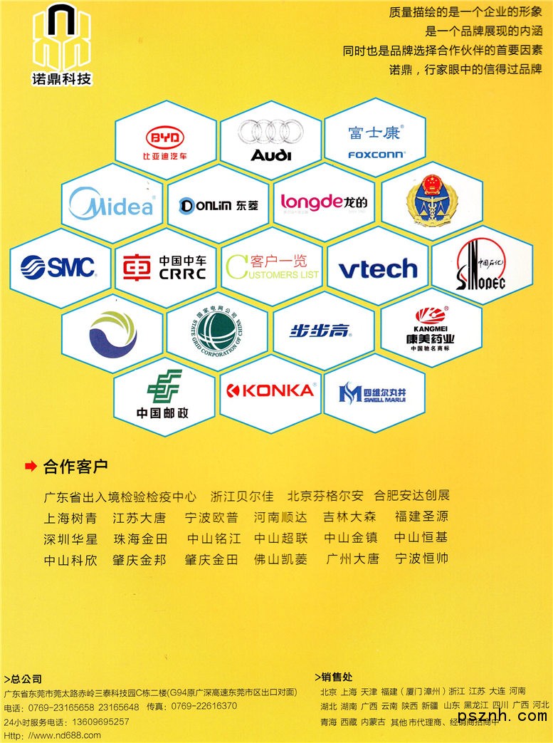 東莞市諾鼎電子科技有限公司視用戶為“上帝”,一貫秉承“質(zhì)量第一、顧客滿意,持續(xù)改進(jìn),爭創(chuàng)一流”的方針,并以“誠信是我風(fēng)格,質(zhì)量是我生命"為宗旨,嚴(yán)格依照ISO9001國際質(zhì)量標(biāo)準(zhǔn)體系的要求,從產(chǎn)品的研發(fā)設(shè)計(jì)、生產(chǎn)制造到銷售及售后服務(wù)全過程,已建立一套嚴(yán)謹(jǐn)?shù)钠焚|(zhì)管理和質(zhì)量保證體系,且采取有效的市場保護(hù)措施,確保為每個用戶提供最優(yōu)質(zhì)的產(chǎn)品和最完善的服務(wù)。