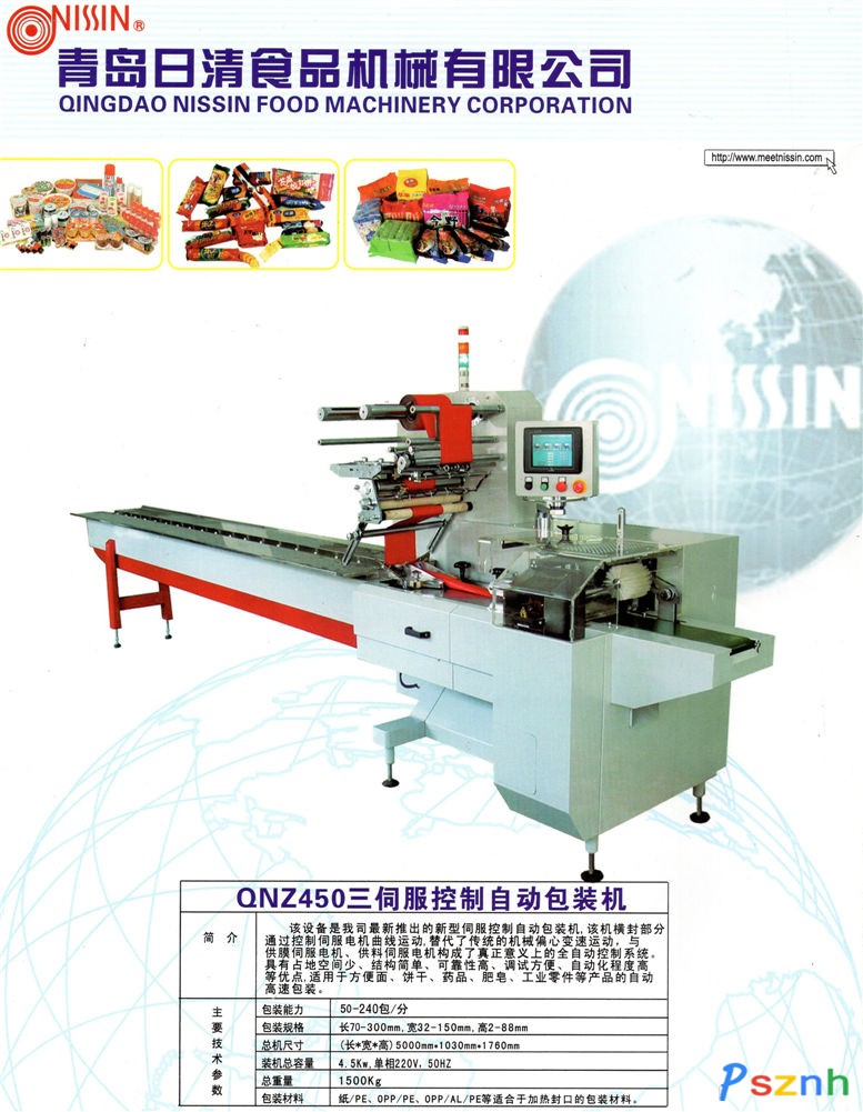 青島日清食品機械有限公司_臥式包裝機_無托盒餅干自動包裝機_餅干夾心機_立式包裝機_屋頂型紙盒灌裝機_裝盒機_自動供料機