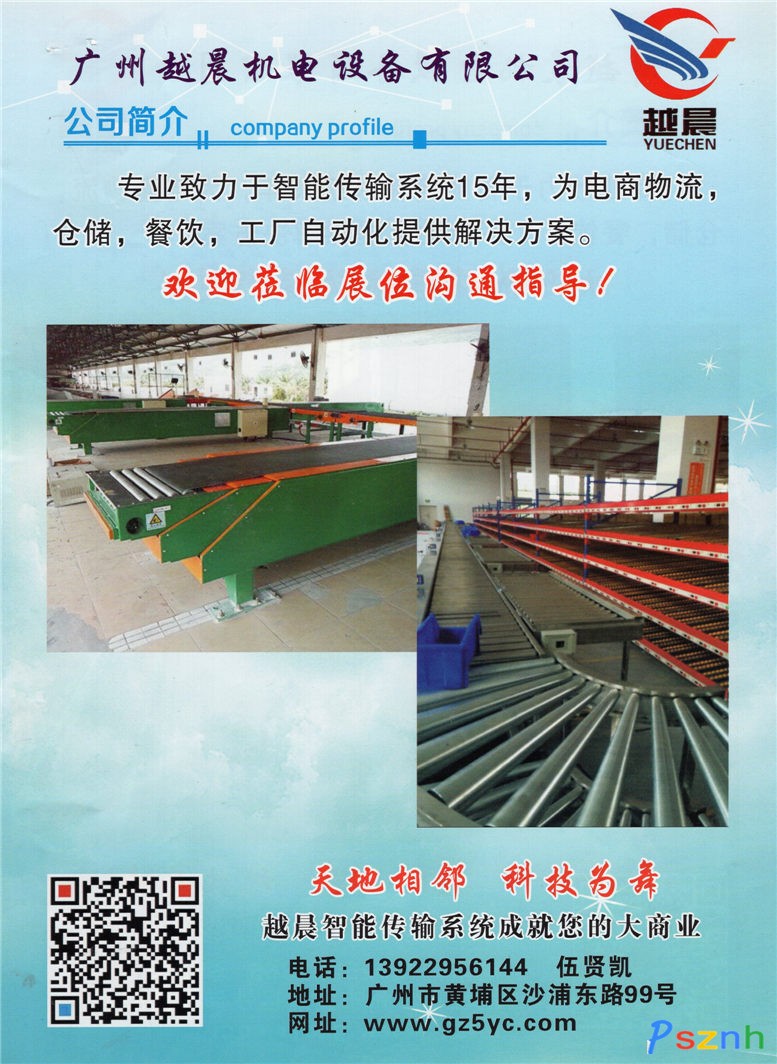 廣州越晨機電設(shè)備有限公司2000年成立。目前在廣州和深圳兩地都設(shè)有分公司,在深圳寶安及東莞大朗擁有兩個工廠車間,專業(yè)致力于各種自動化設(shè)備及配件的生產(chǎn)和銷售, 為各大廠家提供過自動化的解決方案。 ? 在人口紅利逐漸退去的中國,人力資源越發(fā)緊張的形勢下,自動化已經(jīng)是大勢所趨。本公司就是為您提高工作效率,減少人工壓力的優(yōu)秀選擇。 伍賢凱18602097285。 餐飲菜品傳送系統(tǒng),快遞物流傳輸系統(tǒng)及相關(guān)各類配件。 皮帶輸送機,無動力滾筒軌道,動力輥筒傳輸機,餐飲菜品傳送系統(tǒng),快遞物流傳輸系統(tǒng)及相關(guān)各類配件。