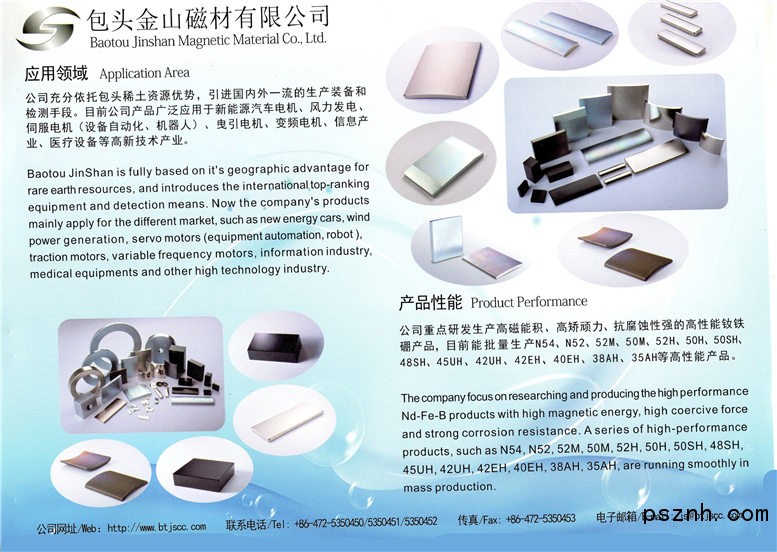 包頭金山磁材有限公司位于中國(guó)內(nèi)蒙古包頭稀土高新區(qū)稀土應(yīng)用產(chǎn)業(yè)園區(qū),占地面積100畝,注冊(cè)資金1.25億元,總投資4.5億元,是專業(yè)生產(chǎn)高性能釹鐵硼磁性材料及器件的國(guó)家級(jí)重點(diǎn)高新技術(shù)企業(yè),年生產(chǎn)能力5000噸。公司由具有三十多年企業(yè)管理、資金運(yùn)營(yíng)經(jīng)驗(yàn)的投資方組建成立,由長(zhǎng)期從事釹鐵硼技術(shù)、管理、經(jīng)營(yíng)的磁材行業(yè)專業(yè)團(tuán)隊(duì)運(yùn)作。公司全面推行ISO 9001、ISO/TS 16949、ISO 14001、OHS 18001管理體系,并通過歐洲ISO 26000企業(yè)社會(huì)責(zé)任認(rèn)可。 公司充分依托包頭稀土資源優(yōu)勢(shì),引進(jìn)國(guó)內(nèi)外一流的生產(chǎn)裝備和檢測(cè)手段,發(fā)揮公司高端產(chǎn)品的生產(chǎn)和研發(fā)能力,重點(diǎn)研發(fā)和生產(chǎn)高磁能積、高矯頑力和耐腐蝕性強(qiáng)的高性能釹鐵硼產(chǎn)品,目前能批量生產(chǎn)N54、N52、52M、50M、52H、50H、50SH、48SH、45UH、42UH、42EH、40EH、38AH、35AH等高性能產(chǎn)品。 公司產(chǎn)品廣泛應(yīng)用于新能源汽車電機(jī)、風(fēng)力發(fā)電、伺服電機(jī)(設(shè)備自動(dòng)化、機(jī)器人)、曳引電機(jī)、變頻電機(jī)、信息產(chǎn)業(yè)、醫(yī)療設(shè)備等高新技術(shù)產(chǎn)業(yè)。 公司質(zhì)量方針:精心設(shè)計(jì),全面管控;專業(yè)服務(wù),持續(xù)改進(jìn)。 公司環(huán)境、安全方針:愛護(hù)環(huán)境,節(jié)能降耗,關(guān)愛員工,安全第一。位于中國(guó)內(nèi)蒙古包頭稀土高新區(qū)稀土應(yīng)用產(chǎn)業(yè)園區(qū),占地面積100畝,注冊(cè)資金1.25億元,總投資4.5億元,是專業(yè)生產(chǎn)高性能釹鐵硼磁性材料及器件的國(guó)家級(jí)重點(diǎn)高新技術(shù)企業(yè),年生產(chǎn)能力5000噸。公司由具有三十多年企業(yè)管理、資金運(yùn)營(yíng)經(jīng)驗(yàn)的投資方組建成立,由長(zhǎng)期從事釹鐵硼技術(shù)、管理、經(jīng)營(yíng)的磁材行業(yè)專業(yè)團(tuán)隊(duì)運(yùn)作。公司全面推行ISO 9001、ISO/TS 16949、ISO 14001、OHS 18001管理體系,并通過歐洲ISO 26000企業(yè)社會(huì)責(zé)任認(rèn)可。 公司充分依托包頭稀土資源優(yōu)勢(shì),引進(jìn)國(guó)內(nèi)外一流的生產(chǎn)裝備和檢測(cè)手段,發(fā)揮公司高端產(chǎn)品的生產(chǎn)和研發(fā)能力,重點(diǎn)研發(fā)和生產(chǎn)高磁能積、高矯頑力和耐腐蝕性強(qiáng)的高性能釹鐵硼產(chǎn)品,目前能批量生產(chǎn)N54、N52、52M、50M、52H、50H、50SH、48SH、45UH、42UH、42EH、40EH、38AH、35AH等高性能產(chǎn)品。 公司產(chǎn)品廣泛應(yīng)用于新能源汽車電機(jī)、風(fēng)力發(fā)電、伺服電機(jī)(設(shè)備自動(dòng)化、機(jī)器人)、曳引電機(jī)、變頻電機(jī)、信息產(chǎn)業(yè)、醫(yī)療設(shè)備等高新技術(shù)產(chǎn)業(yè)。 公司質(zhì)量方針:精心設(shè)計(jì),全面管控;專業(yè)服務(wù),持續(xù)改進(jìn)。 公司環(huán)境、安全方針:愛護(hù)環(huán)境,節(jié)能降耗,關(guān)愛員工,安全第一。