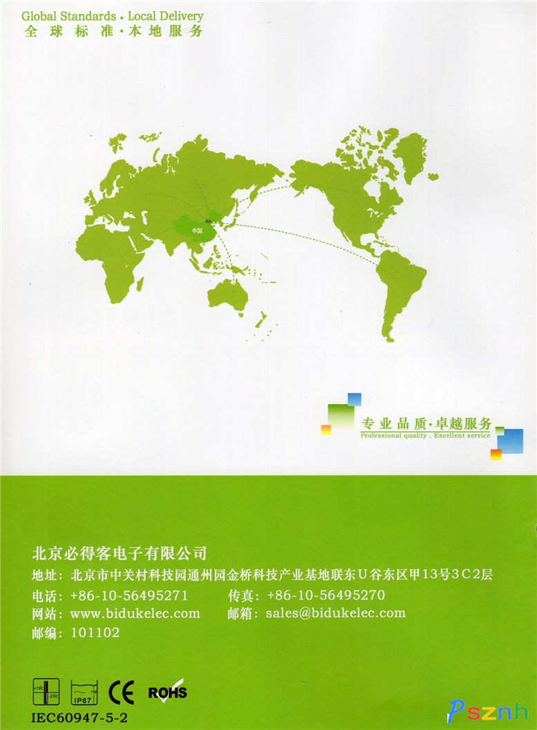 北京必得客電子有限公司 Biduk做為歐美一些知名品牌OEM生產(chǎn)制造商,多年來始終致力于生產(chǎn)、研發(fā)工業(yè)自動(dòng)化領(lǐng)域電感式傳感器、電容式傳感器、光電式傳感器等工控產(chǎn)品。產(chǎn)品研發(fā)與生產(chǎn)嚴(yán)格按照IEC國(guó)際標(biāo)準(zhǔn)來設(shè)計(jì)與控制,至今已匯聚具有豐富傳感器經(jīng)驗(yàn)高科技人才,先進(jìn)的生產(chǎn)工藝和完善的檢測(cè)設(shè)備,嚴(yán)格按照ISO9001質(zhì)量管理體系要求進(jìn)行管理,產(chǎn)品已通過嚴(yán)格的EMC(電磁兼容性)、IP防護(hù)等級(jí)、振動(dòng)沖擊、高低溫等國(guó)際標(biāo)準(zhǔn)測(cè)試并通過歐盟CE認(rèn)證和ROHS檢測(cè)。  公司擁有十幾個(gè)系列數(shù)千種不同種類規(guī)格功能產(chǎn)品。如今在專業(yè)領(lǐng)域內(nèi),公司產(chǎn)品和服務(wù)的廣度和深度深得客戶親賴,業(yè)務(wù)范圍也隨之?dāng)U及全球。我們的足跡遍布世界航空航天、鐵路、港口、冶金、礦山、機(jī)床、紡織、電梯、石油化工、印刷、包裝、食品、建筑、汽車、等行業(yè)。為客戶提供國(guó)際標(biāo)準(zhǔn)的多種類接近傳感器和多方位快捷的技術(shù)服務(wù)支持。