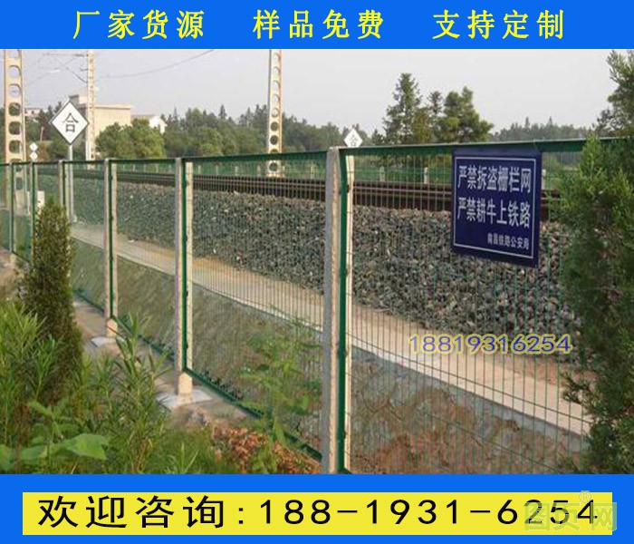 鐵路防護(hù)柵欄主要分鍍鋅防護(hù)柵欄、浸塑防護(hù)柵欄倆大種類(lèi),是以立柱加網(wǎng)片連接而成。選用優(yōu)質(zhì)低碳鋼絲焊接。不僅外觀大方,美觀,而且牢固,防腐性好。主要適用于鐵路兩旁及邊界的隔離防護(hù)及美化。