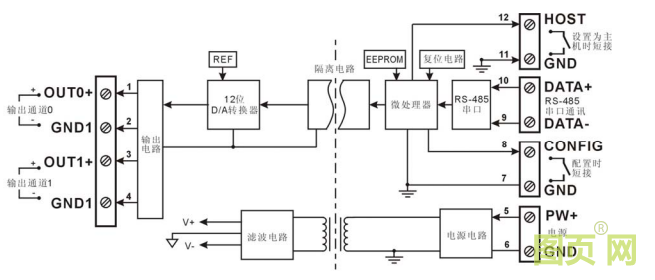 RS485或RS232數(shù)字量隔離轉(zhuǎn)換成標(biāo)準(zhǔn)模擬信號(hào)輸出