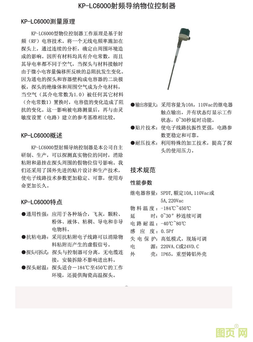 本網(wǎng)頁所展示的有關(guān)【上海錕鵬_KP-LC6000射頻導(dǎo)納物位控_射頻導(dǎo)納物位控】的信息/圖片/參數(shù)等由的會員【上海錕鵬傳感工程有限公司 】提供,由圖頁網(wǎng)會員【上海錕鵬傳感工程有限公司 】自行對信息/圖片/參數(shù)等的真實性、準(zhǔn)確性和合法性負(fù)責(zé),本平臺(本網(wǎng)站)僅提供展示服務(wù),請謹(jǐn)慎交易,因交易而產(chǎn)生的法律關(guān)系及法律糾紛由您自行協(xié)商解決,本平臺(本網(wǎng)站)對此不承擔(dān)任何責(zé)任。您在本網(wǎng)頁可以瀏覽【上海錕鵬_KP-LC6000射頻導(dǎo)納物位控_射頻導(dǎo)納物位控】有關(guān)的信息/圖片/價格等及提供 【上海錕鵬_KP-LC6000射頻導(dǎo)納物位控_射頻導(dǎo)納物位控】的商家公司簡介、聯(lián)系方式等信息。