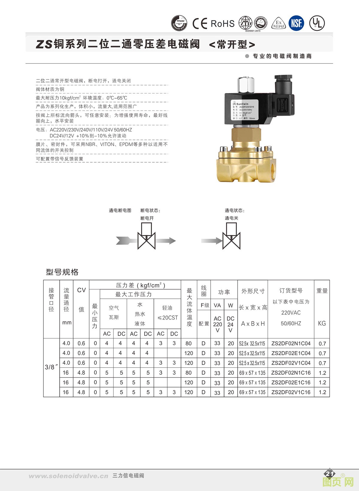 ZS二位二通直動(dòng)式電磁閥/常開型
