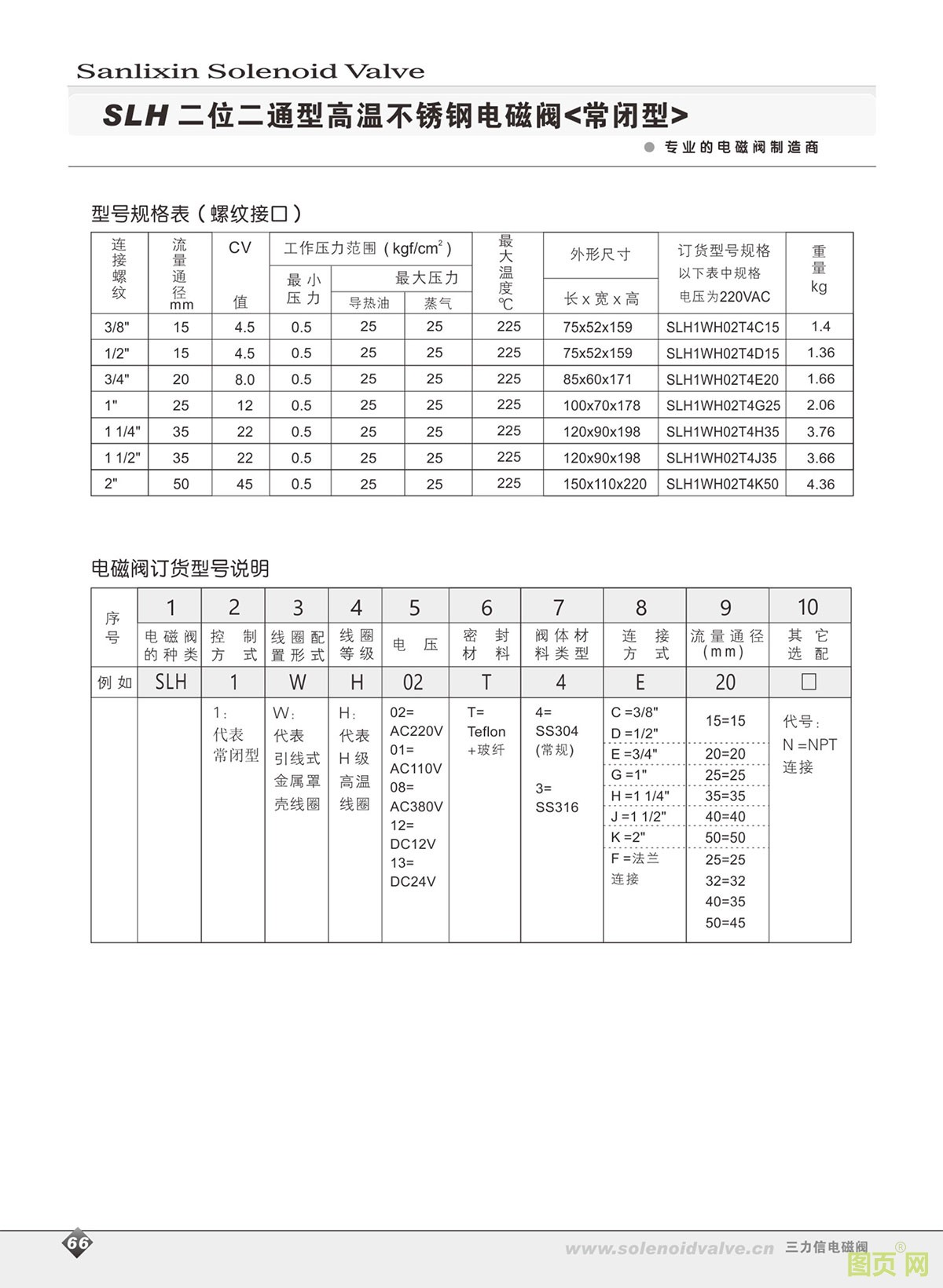 SLH二位二通高溫電磁閥/常閉型