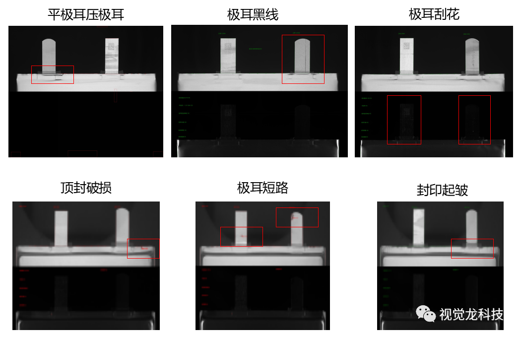 本項(xiàng)目檢測(cè)電芯外觀52種缺陷類型,120多種缺陷項(xiàng)。包含凸點(diǎn)、切邊不良、主體變形、角位變形、破損、脹氣、腐蝕、漏液、異色點(diǎn)、異物、鋁塑膜黑線、電解液、劃傷、極耳短路、頂封短路、極耳黑線、極耳斷裂、極片翻折、鋁箔翻折等缺陷。致命不良(零漏檢)缺陷包含破損、脹氣、切邊不良、角位變形、極耳短路、主體變形、極片翻折、雙極耳、無極耳膠、邊電壓刺破、封印封斜、封印壓異物、封印起皺、壓極耳、脹氣、主體內(nèi)異物等。