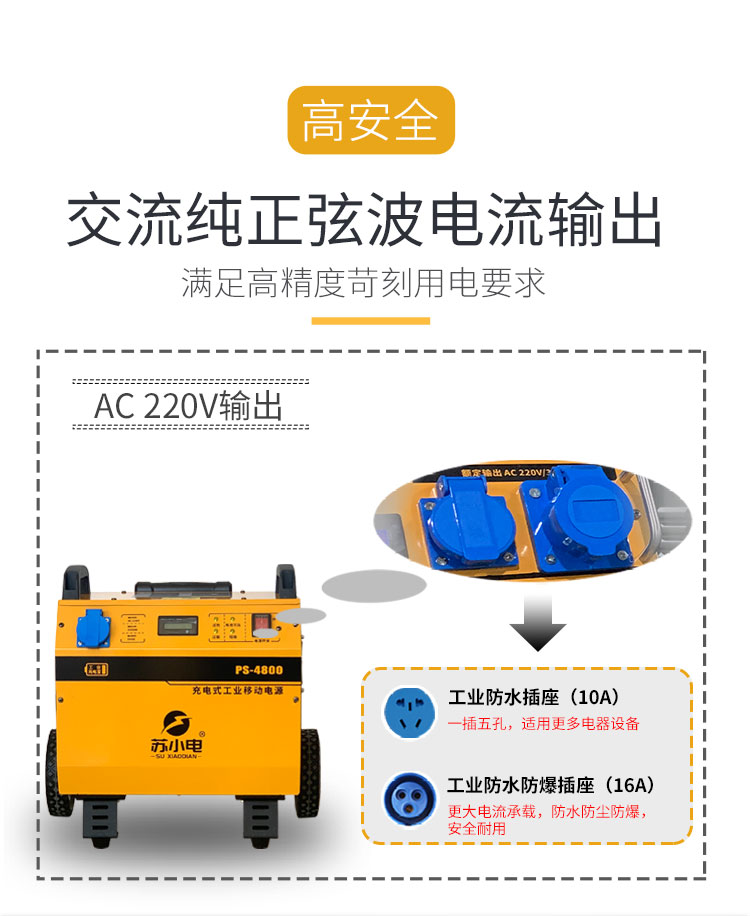 220V/3500W大功率電源,輸出穩(wěn)定,用于電鎬、切割機(jī)、角磨機(jī)等電動(dòng)工具現(xiàn)場(chǎng)供電;