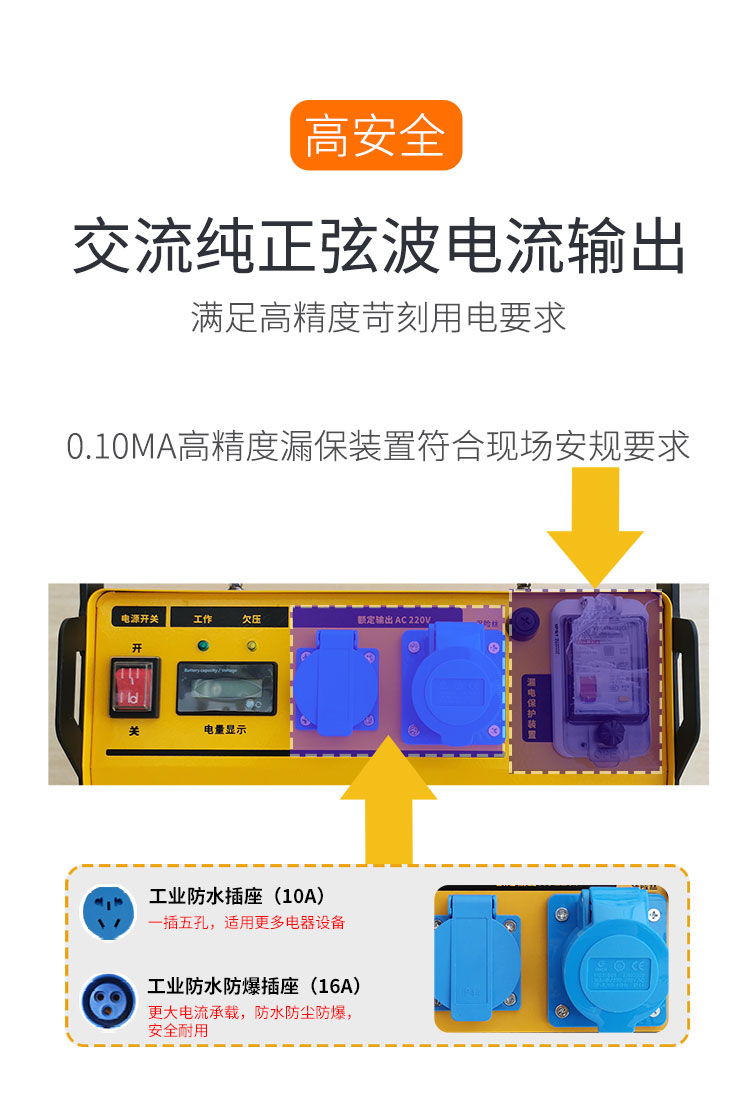 220V/3500W大功率電源,輸出穩(wěn)定,用于電鎬、切割機、角磨機等電動工具現場供電;