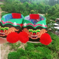 穿虎頭鞋是中國民間育兒習(xí)俗,流行于全國各地。虎頭/黃布制成,鑲一虎頭,因虎是“百獸之王”,故頭中間繡一個“王”字。通常在小兒滿周歲或生日時穿新做的虎頭鞋,民間認(rèn)為,這樣可為小孩壯膽、避邪也有祝愿小孩長命百歲之意。