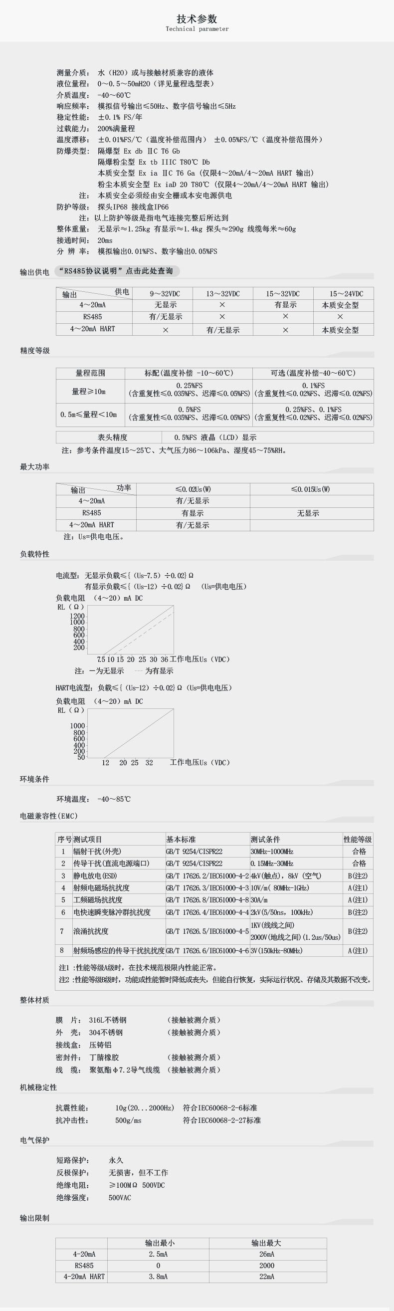 輸出: 4~20mA、4~20mA HART、RS485