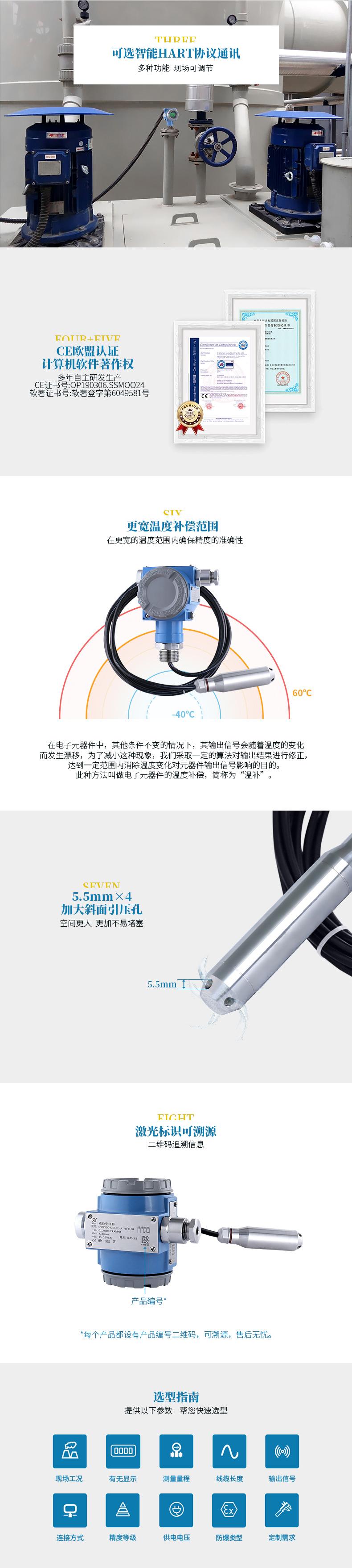 采用擴(kuò)散硅壓力敏感元件膜片隔離技術(shù)電纜連接,直接投入使用,安裝簡便放大電路采用集成芯片,寬電壓供電