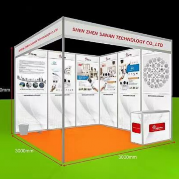 (3m×3m 楣板×1,問(wèn)詢(xún)桌×1,折椅×2, 射燈×2,5A 插座×1,地毯×1。)
