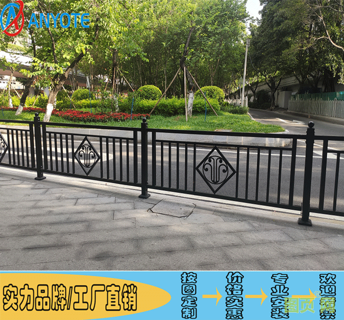 市政鐵藝護(hù)欄特點(diǎn):具有輕盈、美觀、實(shí)用;網(wǎng)片與網(wǎng)柱連接十分緊湊,整體感好;隔離性能好,底座使用水泥墩