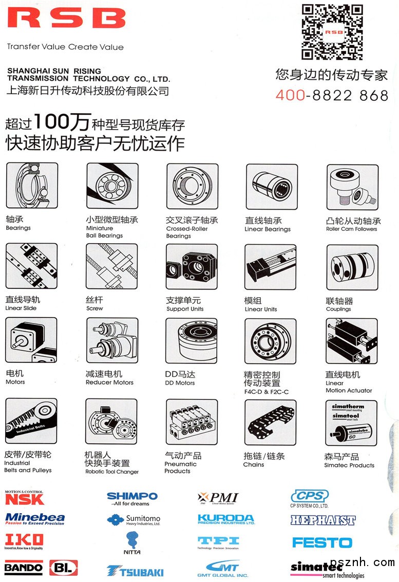 上海新日升傳動(dòng)科技股份有限公司_進(jìn)口軸承_傳動(dòng)產(chǎn)品 SIAF展點(diǎn)擊:683 查看原圖![]() ![]() ![]() 公司名稱: 上海新日升傳動(dòng)科技股份有限公司