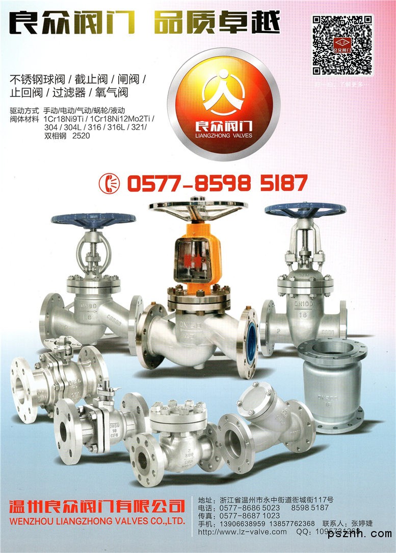 溫州良眾閥門有限公司 不銹鋼球閥 截止閥 閘閥 止回閥點擊:649 查看原圖![]() ![]() ![]() 地址:浙江省溫州市永興康寧路110號