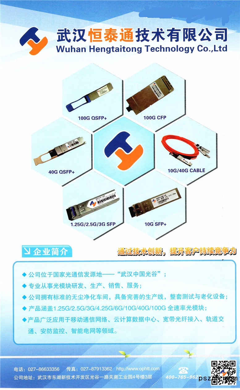 武漢恒泰通技術有限公司 光模塊 光電產品 光纜點擊:371 查看原圖![]() ![]() ![]() 地址:武漢東湖新技術開發(fā)區(qū)光谷一路42號關南工業(yè)園4號樓3層