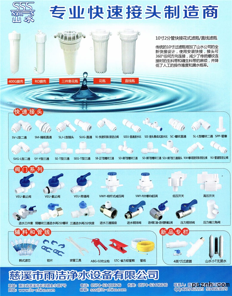 慈溪雨潔凈水設(shè)備有限公司 氣動(dòng)快速接頭 調(diào)速閥 切管刀