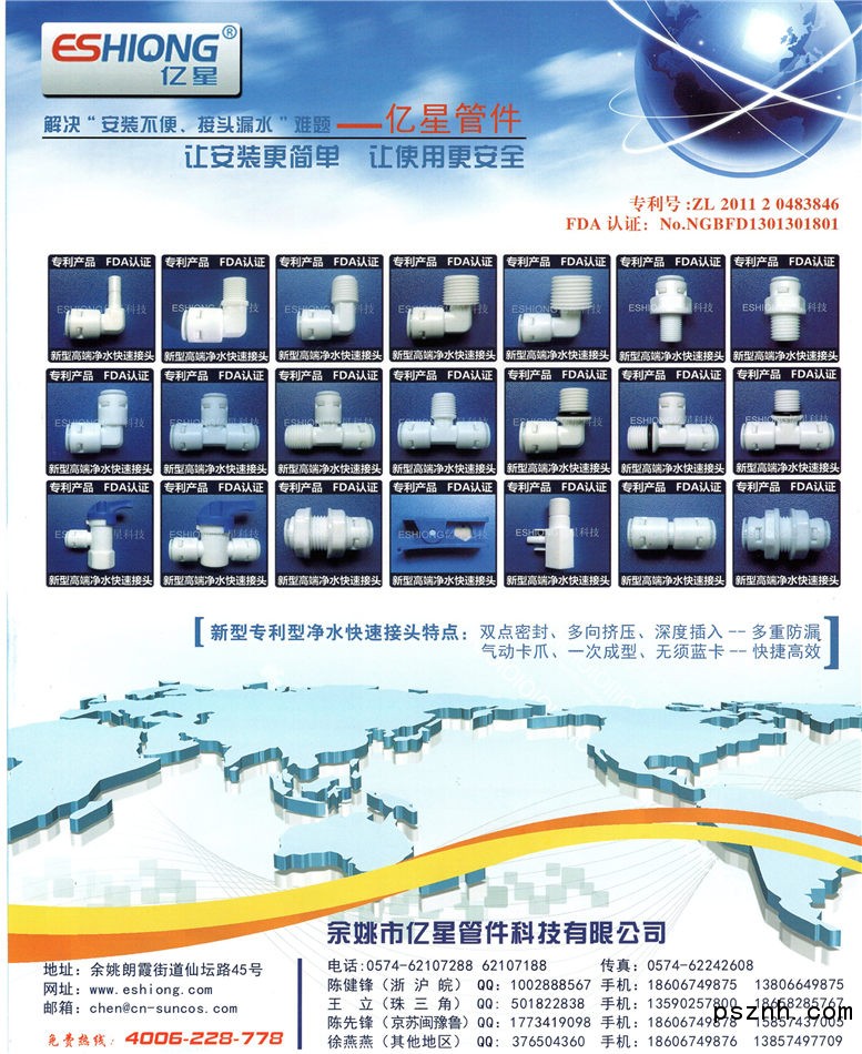 | 經(jīng)營范圍: | 管件的研發(fā);管件、凈水器濾芯及配件、氣動(dòng)元件、接頭、塑料制品、五金件、模具的制造、加工。 | ||