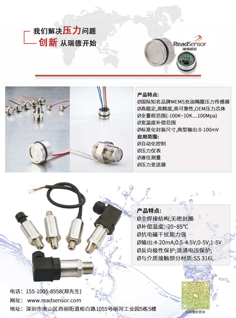深圳瑞德感知科技有限公司_MEMS(擴散硅)壓力芯體_壓力變送器_傳感器點擊:988 查看原圖![]() ![]() ![]() 簡介: