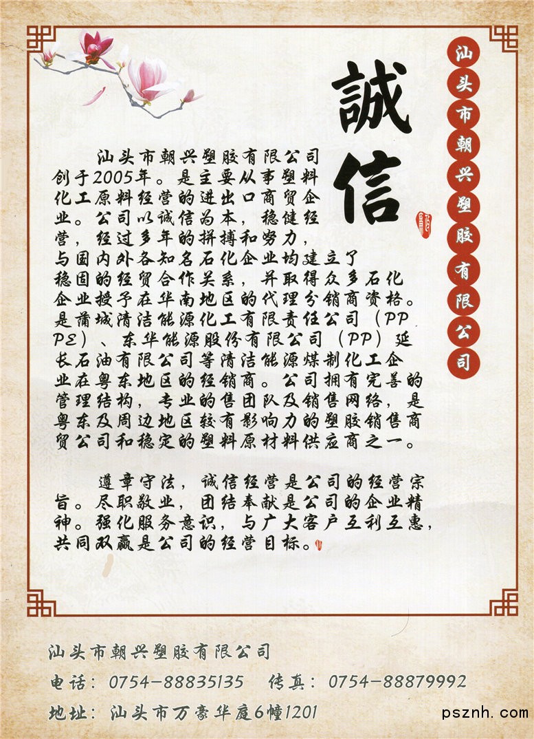 | 公司名稱: | 汕頭市朝興塑膠有限公司 | ||
