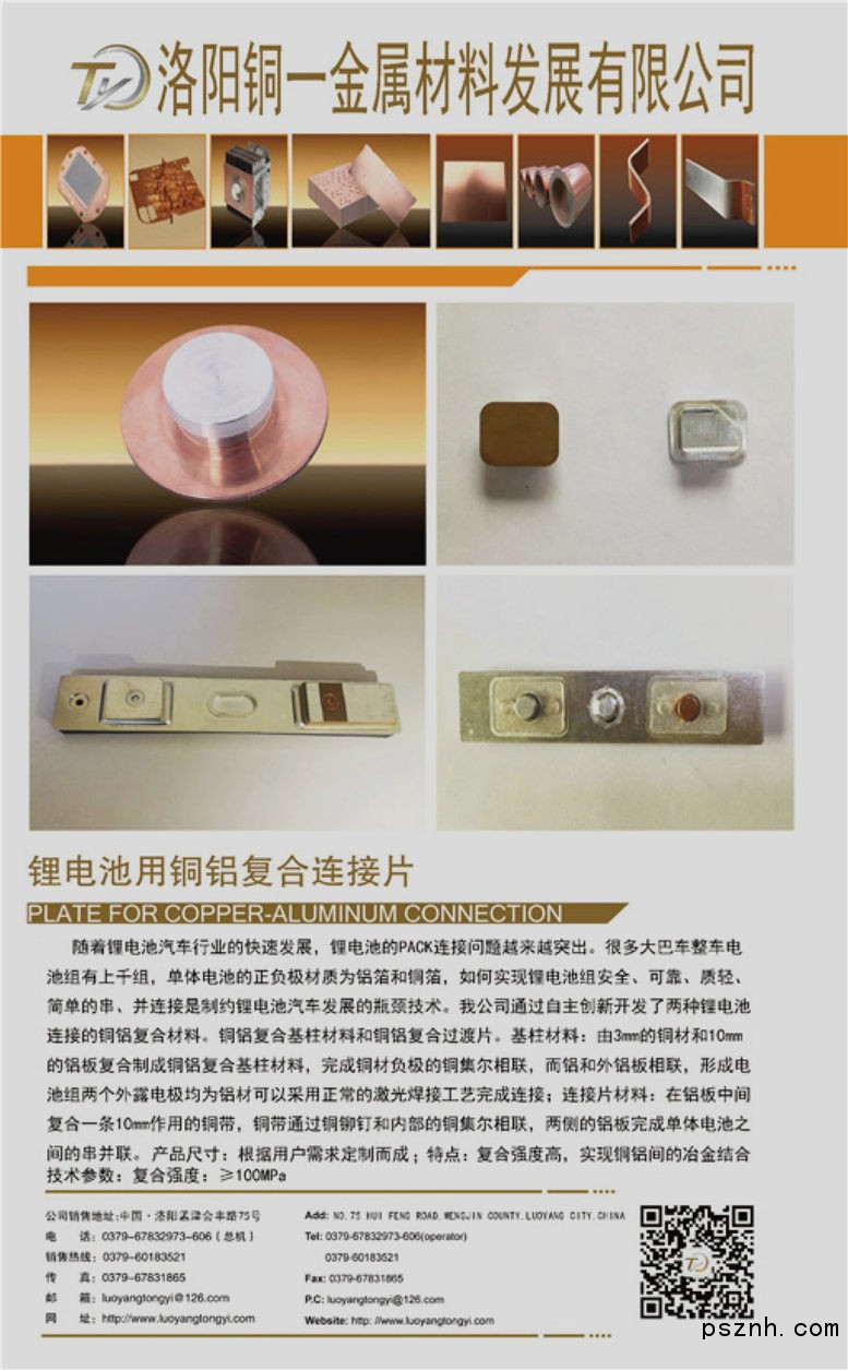 洛陽銅一金屬材料發(fā)展有限公司 銅鋁 銅鉛 鋼(不銹鋼)鋁點擊:737 查看原圖![]() ![]() ![]() 洛陽銅一金屬材料發(fā)展有限公司