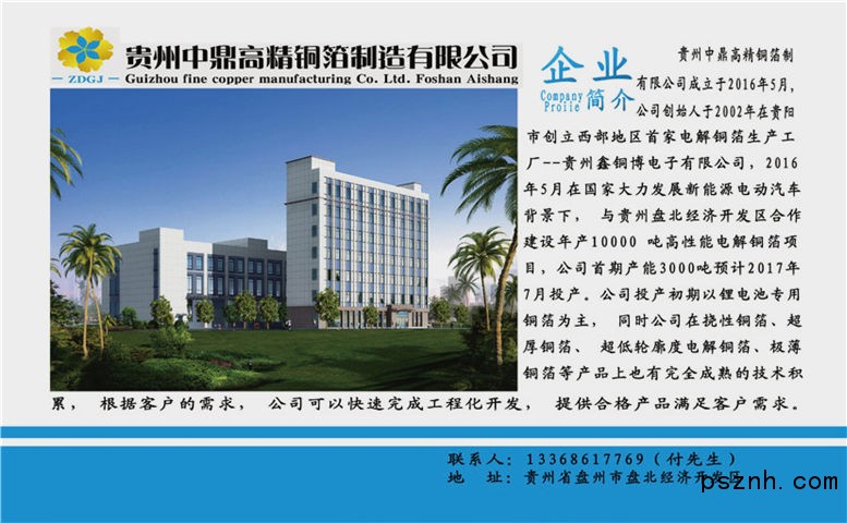 | 公司名稱: | 貴州中鼎高精銅箔制造有限公司 | ||