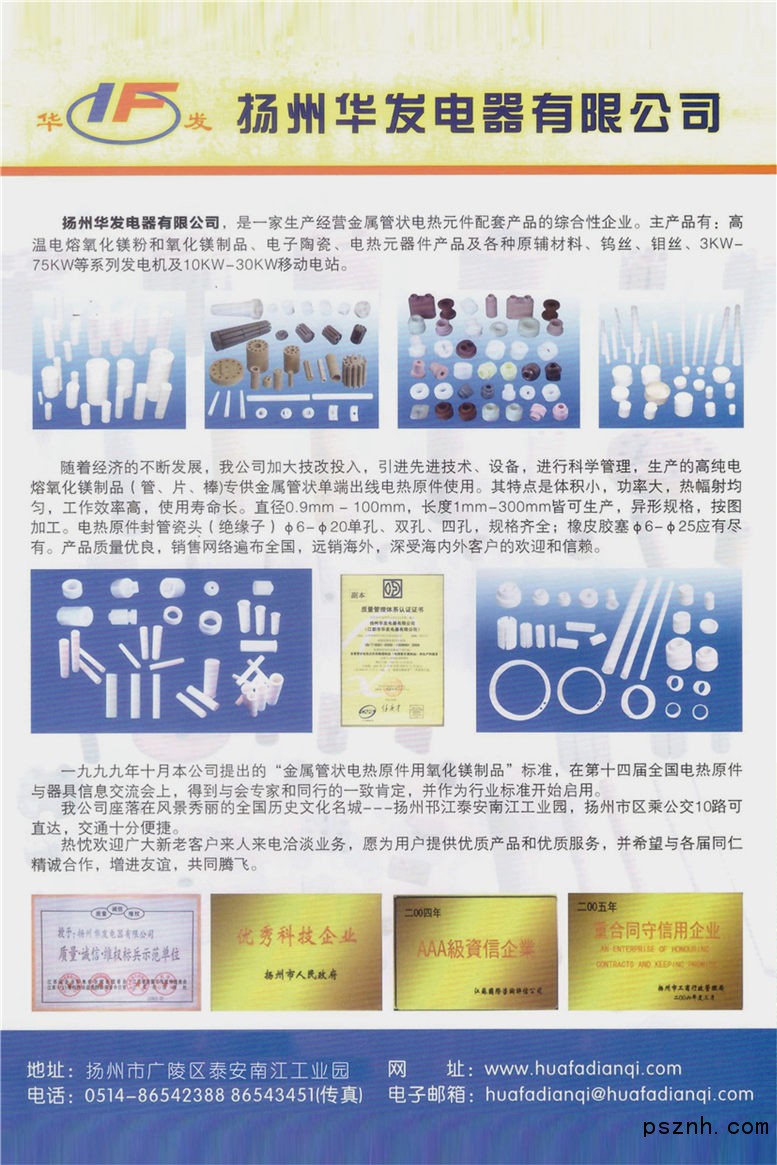 揚(yáng)州華發(fā)電器有限公司 陶瓷制品 鎢鉬制品 電熱元器件 塑料制品點(diǎn)擊:658 查看原圖![]() ![]() ![]() 揚(yáng)州華發(fā)電器有限公司