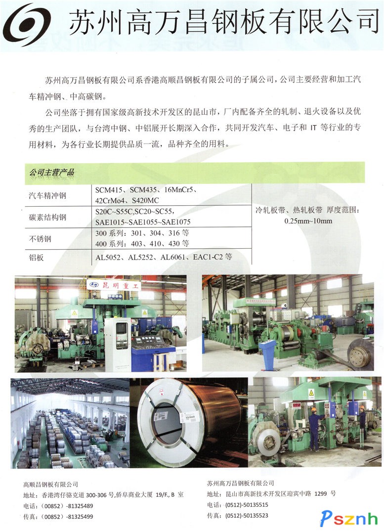 | 公司名稱: | 蘇州高萬昌鋼板有限公司 | ||