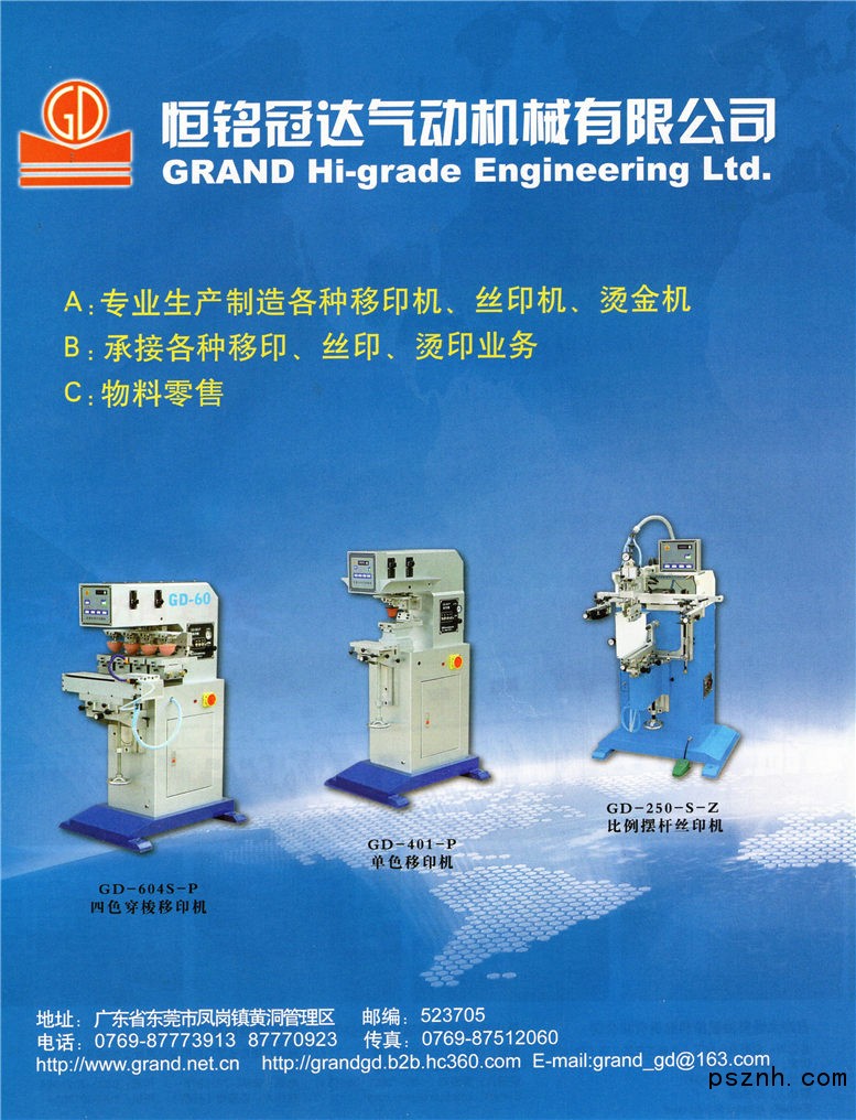 東莞市恒銘冠達氣動機械有限公司 移印機 絲印機 燙金機點擊:544 查看原圖![]() ![]() ![]() 地址:廣東東莞鳳崗黃洞管理區(qū) 電話:(0769)87773913 傳真:87512060 郵編:523705 E-mail:grand@vip.sina.com |
