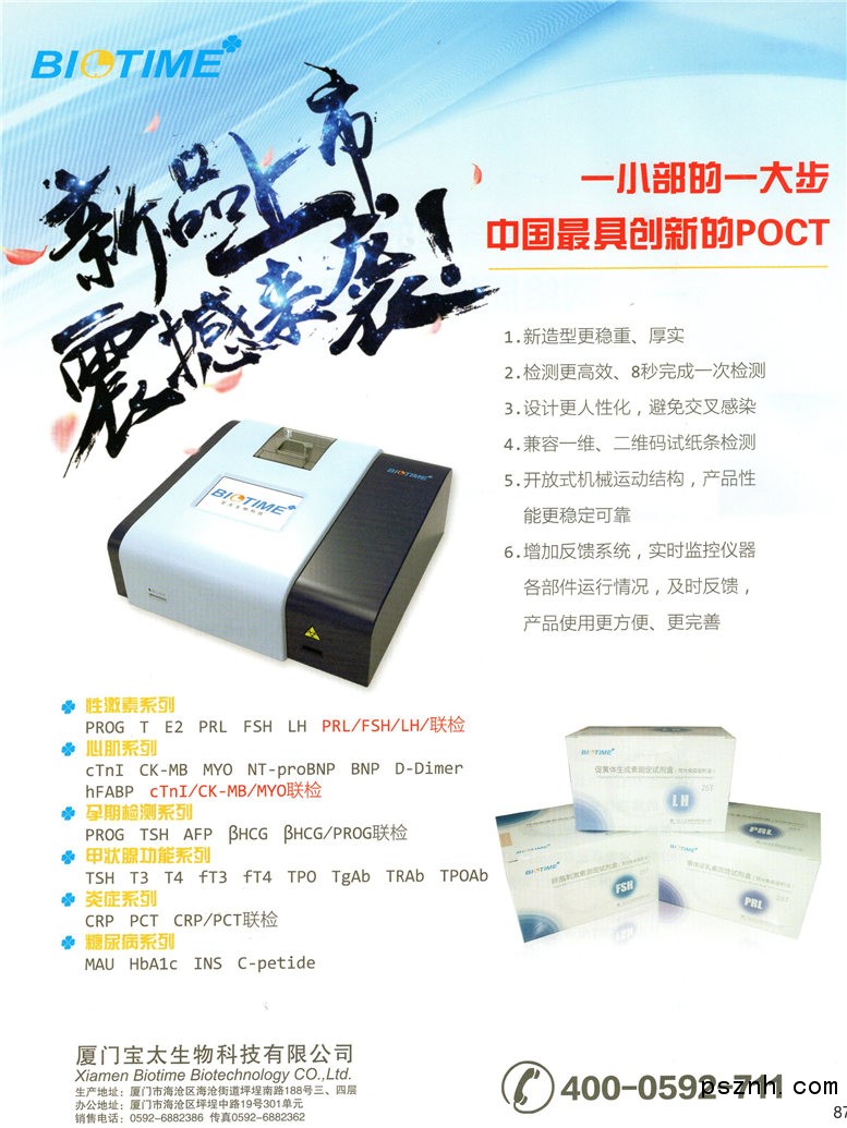 廈門寶太生物科技有限公司 免疫熒光分析儀_液基細(xì)胞檢測試劑_熒光免疫診斷試劑點擊:1546 查看原圖![]() ![]() ![]() 電 話:0592-6882386 傳 真:0592-6882362