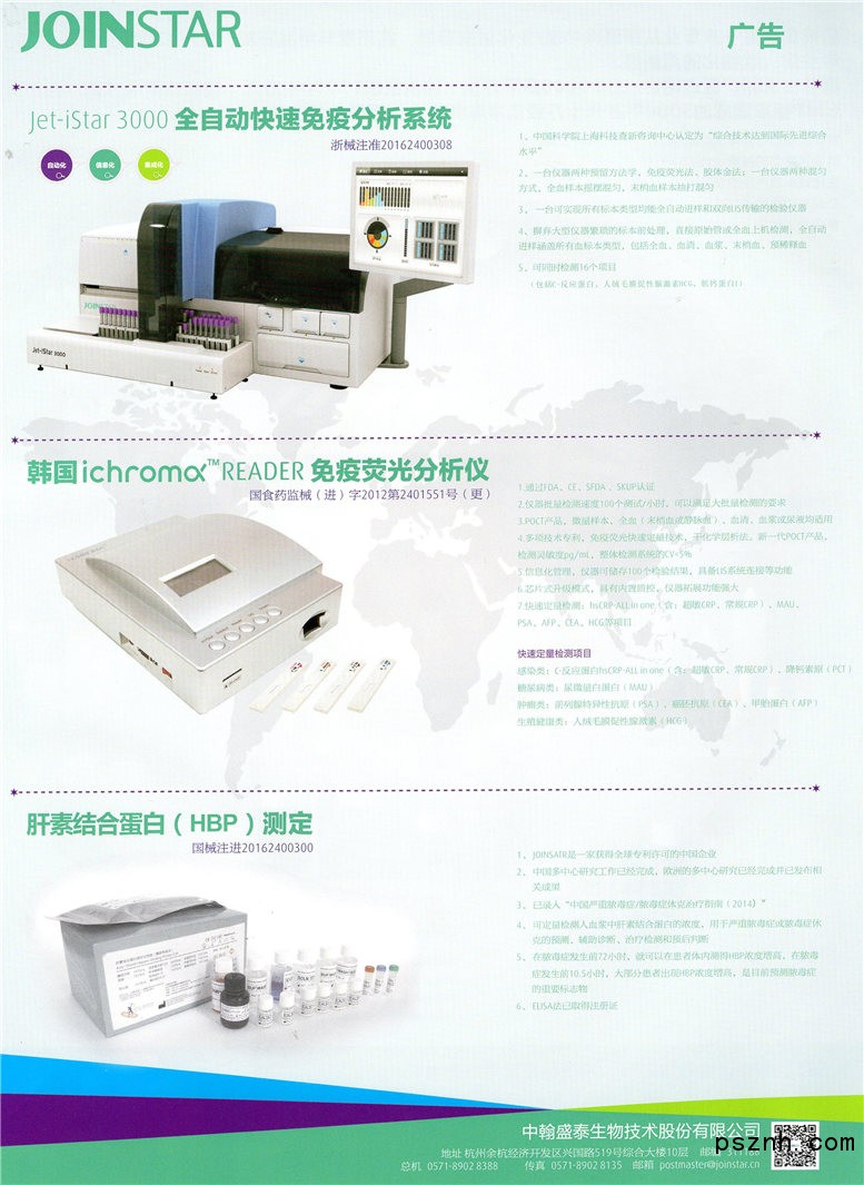 中翰盛泰生物技術(shù)股份有限公司 POCT/快速診斷系列 感染性疾病快速診斷平臺(tái) 心腦血管疾病快速診斷平臺(tái)點(diǎn)擊:713 查看原圖![]() ![]() ![]() 杭州錢(qián)江經(jīng)濟(jì)開(kāi)發(fā)區(qū)興國(guó)路519號(hào)