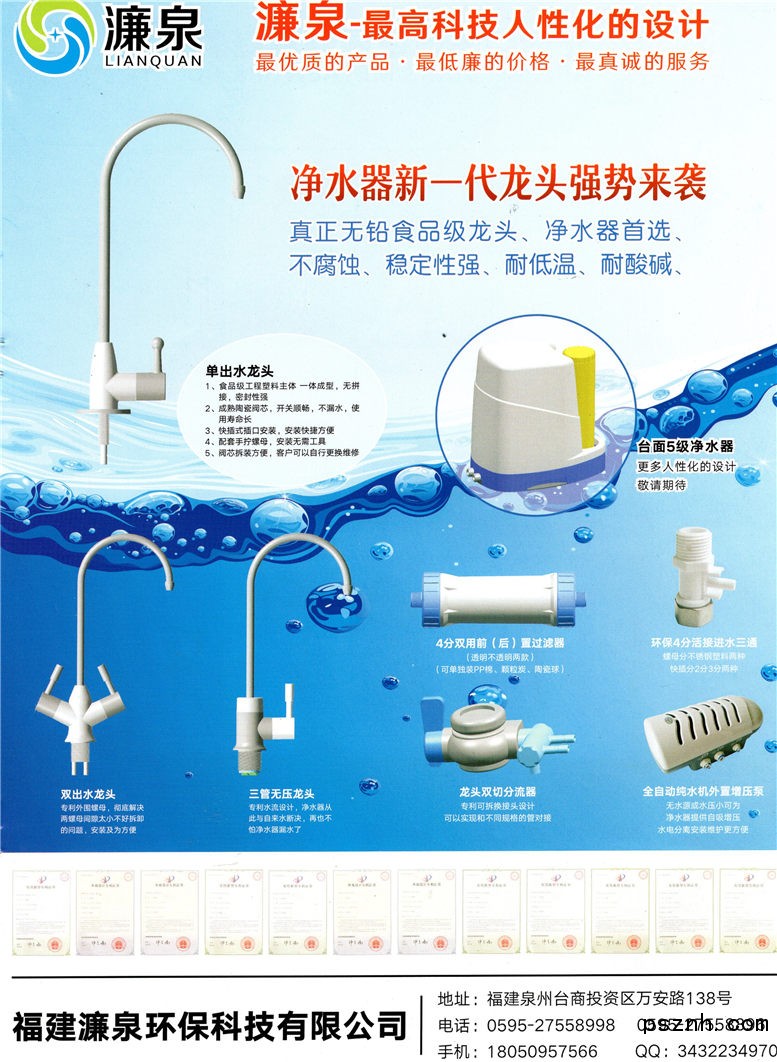 福建濂泉環(huán)保科技有限公司 凈水器 水龍頭 濾芯 水管點(diǎn)擊:580 查看原圖![]() ![]() ![]() 福建濂泉環(huán)保科技有限公司