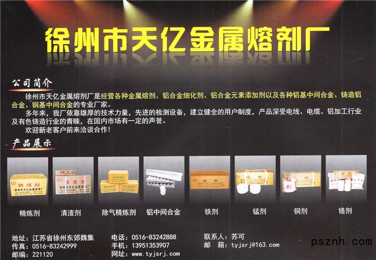 | 公司名稱: | 徐州市天億金屬熔劑廠 | ||