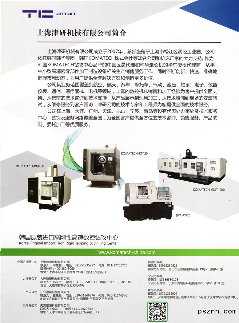 上海津研機(jī)械有限公司 韓國komatech鉆攻中心 韓華HanWha TechM縱切車削中心 意大利保富利BUGGOLI