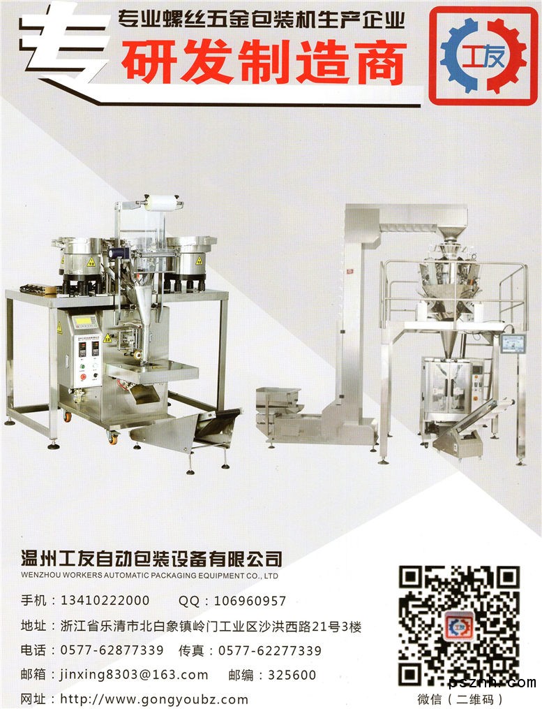 溫州工友自動包裝設備有限公司 螺絲包裝機_紐扣包裝機_自動包裝機點擊:909 查看原圖![]() ![]() ![]() 溫州工友自動包裝設備有限公司