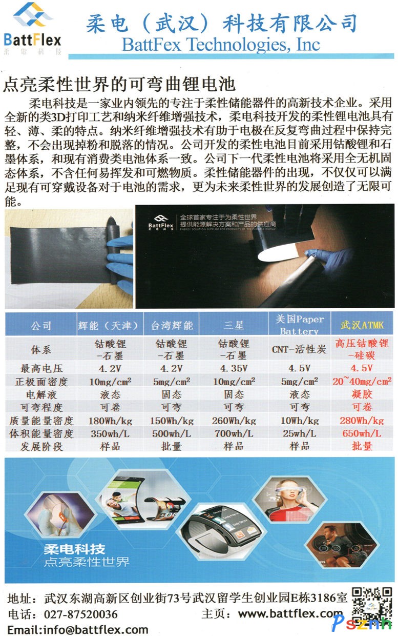 柔電(武漢)科技有限公司_柔性電池_柔性儲能器件_柔性鋰電池點擊:1661 查看原圖![]() ![]() ![]() 電話027-87520036