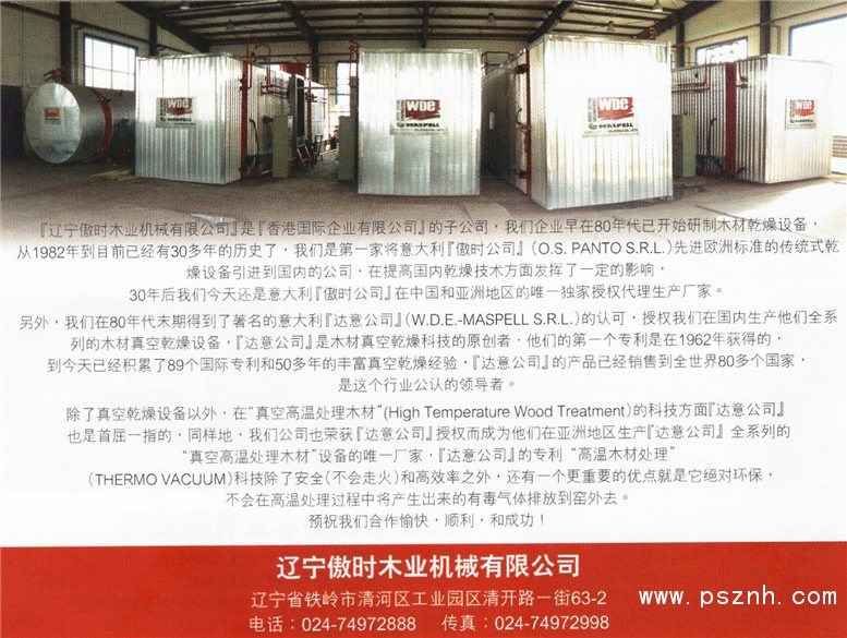 | 經營范圍: | 木材干燥設備及配件、木工機械及零部(配)件、木制品生產加工用除塵及儲料設備、木材干燥設備配套用常壓熱水鍋爐。(依法須經批準的項目,經相關部門批準后方可開展經營活動。) | ||