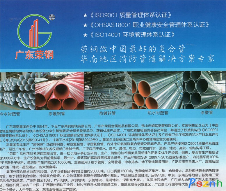 廣東榮鋼管道科技有限公司 _熱鍍鋅鋼管_給水襯塑復(fù)合鋼管_涂塑復(fù)合鋼管_內(nèi)外涂環(huán)氧樹(shù)脂復(fù)合鋼管點(diǎn)擊:2408 查看原圖![]() ![]() ![]() 地址:廣東省佛山市南海區(qū)雄星工業(yè)路南海管業(yè)城B區(qū)