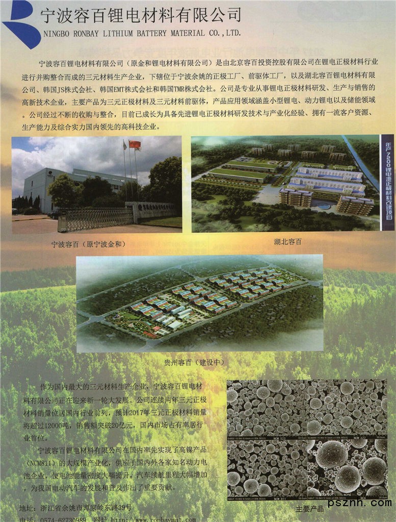 寧波容百新能源科技股份有限公司 NCM333 NCM523 NCM811點擊:469 查看原圖![]() ![]() ![]() 寧波容百鋰材料有限公司